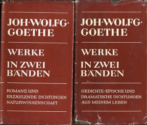 Goethe, Johann Wolfgang von: Goethes Werke. (Erweiterte Neuauflage der Jubiläumsausgabe). 2 Bände. München: Droemer 1957. Kl.-8°. 1214; 1150 S., flexibler Leineneinband (Schutzumschlag mit Randläsuren und Fehlststellen ohne Textverlust; Einband von Band 1 wenig befleckt; sonst gut erhalten) (Knaur-Klassiker)