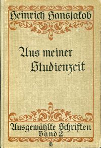 Hansjakob, Heinrich: Ausgewählte Schriften, Band 2: Aus meiner Studienzeit : Erinnerungen. 1.-6. Tausend. Stuttgart: Bonz 1910. 8°. 326 S., Pappband mit umlaufendem Farbschnitt (Ex Libris auf Innendeckel; Einband berieben; Stempel auf Titelblatt; Buchblock leicht verzogen; sonst altersgemäss gut erhalten)
