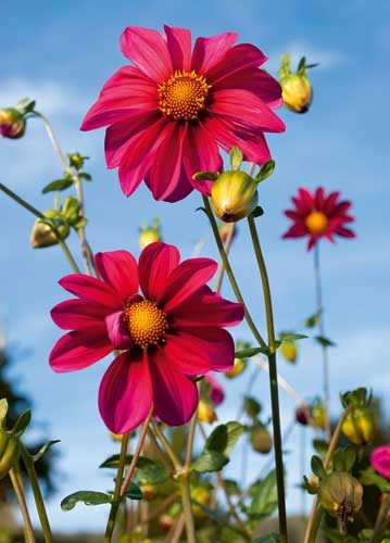 bildreich karten PK 933: hochsommer. Hochformat. (Dahlien, Garten, Bauerngarten, Himmel) Mindestbestellmenge: 15 Karten (auch assortiert).