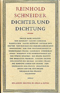 Schneider, Reinhold: Über Dichter und Dichtung. Köln/Olten: Hegner 1953. 8°. 346 S., Leinen (Besitzervermerk auf Vorsatz; Ex Libris auf Innendeckel; gut erhalten) CHF 24.00 |