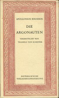 Apollonius Rhodios: Die Argonauten. Verdeutscht von Thassilo von Scheffer. 10.-15 Tsd. Leipzig: Dieterich 1947. Kl.-8°. XVI, 237 S., Leinen mit Kopffarbschnitt (leicht angestaubt; ohne Schutzumschlag; Papierbedingt leicht gebräunt; gut erhalten) (=Sammlung Dieterich ; Bd. 90)