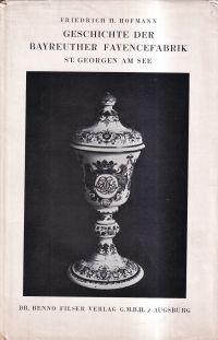 Hofmann, Friedrich Hermann: Geschichte der Bayreuther Fayencefabrik. St. Georgen am See. Augsburg, Benno Filser, 1928. 8°. 111 S. Ill., 107 Abb. auf. 58 Tfln. & 75 Fabrikmarken. Leinen Schutzumschlag mit Randläsuren; altersgemäss gut erhalten)
