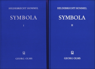 Hommel, Hildebrecht: Symbola. Kleine Schriften zur Literatur- und Kulturgeschichte der Antike. 2 Bände. Hildesheim: Olms 1976-88. 8°. VIII, 504 S., sw-Abbildungen, Register. Leinen (gut erhalten) (=Collectanea ; 5) Hg. v. Burkhard Gladigow. Aus dem Inhalt: Aigisthos und die Freier: zum poetischen Plan und zum geschichtlichen Ort der Odyssee – Solon: Staatsmann und Dichter – Das hellenische Ideal vom einfachen Leben – Die trojanische Herkunft der Franken – Wahrheit und Gerechtigkeit. Zur Geschichte und Deutung eines Begriffspaares – Die Gerichtsszene auf dem Schild des Achilleus – Das Doppelgesicht auf den Münzen von Istros u.v.a.