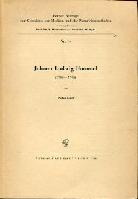 Gart, Peter: Johann Ludwig Hommel (1706 – 1743). Bern: Haupt 1958. Gr.-8°. 48 S., Abbildungen, broschiert (Ex Libris auf Innendeckel; leicht gebräunt; sonst gut erhalten) (=Berner Beiträge zur Geschichte der Medizin und der Naturwissenschaften; 14)