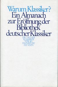 Warum Klassiker? Ein Almanach zur Eröffnungsedition der Bibliothek deutscher Klassiker. 1. Aufl. Frankfurt/Main: Deutscher Klassiker Verlag 1985. 8°. XI, 331 S., Farb- und sw-Abbildungen, engl. broschiert (gut erhalten)