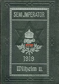 Semi-Imperator [d.i. Wilhelm II. Kaiser von Deutschland] 1888-1918. Eine genealogisch-rassengeschichtliche Aufklärung zur Warnung für die Zukunft ; ein packender Kommentar zu den Semi-Alliancen im besonderen und semigothaischen Erkenntnissen im allgemeinen. München: Eher 1919. 8°. 206 S., 1 Faltblatt, Leinen mit mehrfrabigem Einbandschmuck Papier altersbedingt leicht gebräunt; wenig Bleistiftanstreichungen; Buchblock geknickt; sonst altersgemäss gut erhalten) (=Semi-Alliancen Folge – Judaisierte Hohenzollern) Text in Fraktur.
