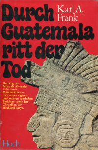 Frank, Karl A.: Durch Guatemala ritt der Tod. Der Zug des Pedro de Alvarado 1524 durch Mittelamerika, nach seinen eigenen und anderen spanischen Berichten sowie den Chroniken der Hochland-Maya. Düsseldorf: Hoch 1973. Gr.-8°. 224 S., Illustrationen, gebunden (Besitzervermerk auf Vorsatz; SU mit leichten Läsuren und angebräunt; sonst gut erhalten)