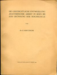 Hintzsche, Erich: Die geschichtliche Entwicklung anatomischer Arbeit in Bern bis zur Gründung der Hochschule. Bern: Haupt 1942. Gr.-8°. 84 S., Illustrationen, broschiert (Umschlag leicht angebräunt und leicht angestaubt; sonst gut erhalten) (=Aus: Berner Zeitschrift für Geschichte u. Heimatkunde. 1942)
