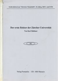 ![]() Ballmer, Der erste Rektor der Zürcher Universität. (Umschlag) |