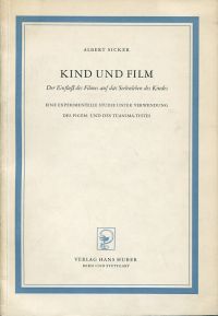 Sicker, Albert: Kind und Film. Der Einfluss d. Filmes auf das Seelenleben des Kindes. Eine experimentelle Studie unter Verwendung des Pigem- und des Tuanima-Testes. Bern/Stuttgart: Huber 1956. Gr.-8°. 143 S., Bibliographie, broschiert (angestaubt, Papier leicht gebräunt; sonst gut erhalten)
