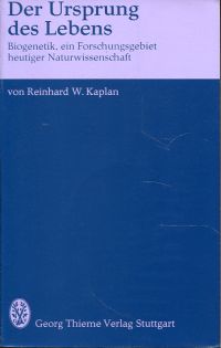 Kaplan, Reinhard W.: Der Ursprung des Lebens. Biogenetik, ein Forschungsgebiet heutiger Naturwissenschaft. Stuttgart, Thieme, 1972. 8°. 278 S., 43 Abbildungen; 12 Tabellen, Bibliographie, broschiert (Besitzervermerk auf Titelblatt; Papier leicht gebräunt)