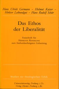 Germann, Hans Ulrich (Hrsg.): Das Ethos der Liberalität. Festschrift Hermann Ringeling zum fünfundsechzigsten Geburtstag. Freiburg: Univ.-Verl.; Freiburg (Breisgau) ; Wien : Herder 1993. 8°. 347 S., broschiert (gut erhalten) (=Studien zur theologischen Ethik ; 54)