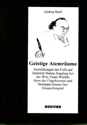 Bartl, Andrea: Geistige Atemräume. Auswirkungen des Exils auf Heinrich Manns Empfang bei der Welt, Franz Werfels Stern der Ungeborenen und Hermann Hesses Das Glasperlenspiel Bonn Bouvier 1996. 8°. 370 S., Auswahlbibliographie, Pappband (Einband mit leichten Gebrauchsspuren; gut erhalten) (=Studien zur Literatur der Moderne; 25)