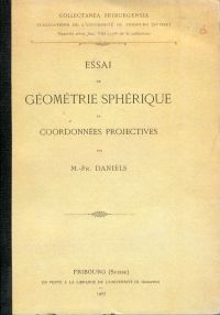 Daniels, M.-Fr.: Essai de géométrie sphérique en coordonnées projectives. Fribourg: Librairie de l’Université 1907. 4°. XIV, 280 S., 45 Figuren im Text, broschiert (unbeschnitten; gebräunt; neuer Einband) (=Collectanea Friburgensia, nouvelle série, Fasc. 8).