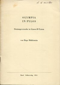 Mühlestein, Hugo: Olympia in Pylos. Deutungsversuche in Linear-B-Texten. Basel 1954. 8°. 16 S., geheftet (Anstreichungen; Umschlag angestaubt und wenig abgegriffen)