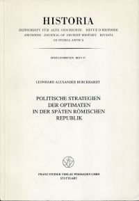 Burckhardt, Leonhard Alexander: Politische Strategien der Optimaten in der späten römischen Republik. Stuttgart/Wiesbaden: Steiner 1988. 8°. 296 S., Register, Bibliographie, broschiert (private Widmung auf Vorsatz; gut erhalten) (Historia, Einzelschriften; H. 57)