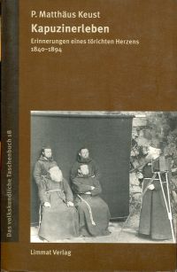 Keust, P. Matthäus: Kapuzinerleben. Erinnerungen eines törichten Herzens 1840 bis 1894. Zürich: Limmat 1999. 8°. 430 S., 33 sw-Abbildungen, broschiert (gut erhalten) (=Das volkskundliche Taschenbuch;18) Dieser mit Humor und Selbstrionie und mit Sinn für das charakterische Detail geschriebene und bisher unveröffentlichte Originaltext gewährt uns Einblick in das damalige Ordensleben der Kapunziner in der Deutschschweiz; er ist ein wacher Zeuge und scharfer Beobachter des 19. Jahrhunderts mit all seinen konfessionspolitischen Auseinandersetzungen, die damals hohe Wellen warfen, dem Sonderbundskrieg, dem Kulturkampf und darüber hinaus.