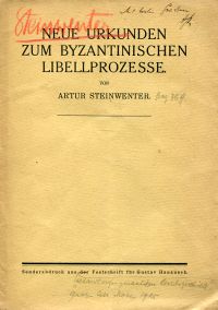 Steinwenter, Neue Urkunden zum byzantinischen Libellprozess.