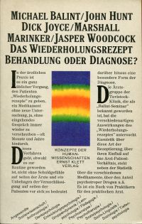 Balint, Michael u.a.: Das Wiederholungsrezept. Behandlung oder Diagnose? Stuttgart: Klett 1975. 8°. 189 S., broschiert (Papier leicht gebräunt; gut erhalten) (=Konzepte der Humanwissenschaften)