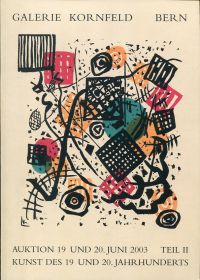 Kunstwerke des 19. und 20. Jahrhunderts. Bilder, Aquarelle, Zeichnungen, Graphik, Skulpturen, illustrierte Bücher, Dokumentation ; Auktion in Bern, Donnerstag u. Freitag, den 19. u. 20. Juni 2003. Bern: Galerie Kornfeld 2003. Lex.-8°. 207, 84 S. sw-Abbildungen, broschiert gut erhalten) (=Kunst des 19. und 20. Jahrhunderts, : Auktion in Bern / Galerie Kornfeld, Bern ; T. 2)