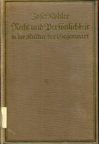 ![]() Kohler, Recht und Persönlichkeit in der Kultur der Gegenwart. (Umschlag) |