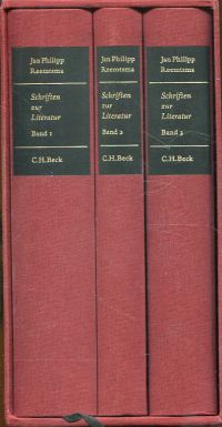 Reemtsma, Jan Philipp: Schriften zur Literatur. 3 Bände. München: C.H. Beck 2015. Gr.-8°. 1442 S., 3 Abbildungen, Leinen in Schuber (gut erhalten) Band 1: Homer, Shakespeare, Wieland und andere Zeitgenossen – Band 2: Arno Schmidts poetische Sendung – Band 3: Literarische Endspiele von Karl Kraus bis Walter Kempowski. Jan Philipp Reemtsmas Schriften zur Literatur sind nicht nur eine reich gefüllte Schatztruhe der Weltliteratur, sondern auch eine hohe Schule des Lesens. Seine Essays führen durch die Epochen, Werke, Gattungen und Autoren, beleuchten das Erhabene ebenso wie das Absurde, das Radikale und das Obsessive, die Trauer und das Komische.