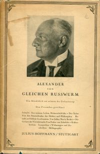 ![]() Gleichen-Rußwurm, Ein Rückblick an seinem 60. Geburtstag. (Umschlag) |