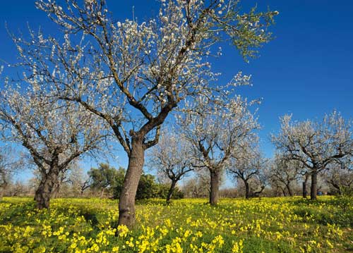 bildreich karten PK 1042: im bluetenreich. Querformat. (Mandelbaum, Mandelbäume, Blumenwiese, Mallorca) Mindestbestellmenge: 15 Karten (auch assortiert).