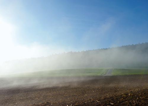 bildreich karten PK 1103: erhebend. Querformat. (Nebel, Acker, Sonne, Herbstmorgen) Mindestbestellmenge: 15 Karten (auch assortiert).