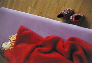 bildreich karten PK 454: schlummerstunde. Hochformat. (Hort, Kita, Bett, Schlaf, Pause, Tigerfinken) Mindestbestellmenge: 15 Karten (auch assortiert).