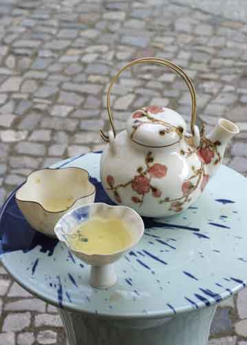 bildreich karten PK 654: tee bei yafang II. Hochformat. (Teekanne, Teekrug, Chinesisch, Japanisch, Teeschale, Teetasse, Strasse, Pflastersteine, Pause) Mindestbestellmenge: 15 Karten (auch assortiert).