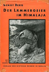 Berg, Bengt: Der Lämmergeier im Himalaja. 1.-12. Tsd. Berlin: Reimer 1931. 8°. 208 S., zahlreiche sw-Abbildungen, Leinen (private Widmung auf Vorsatz verso; Schutzumschlag mit Randläsuren und Fehlstellen; sonst gut erhalten) (=Bengt Berg’s illustrierte Tierbücher, Reihe 2, Bd. 4)