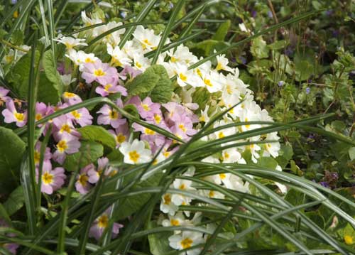 bildreich karten PK 730: primelbueschel. Querformat. (Primel, Primula, Wiese, Ostern, Gras) Mindestbestellmenge: 15 Karten (auch assortiert).