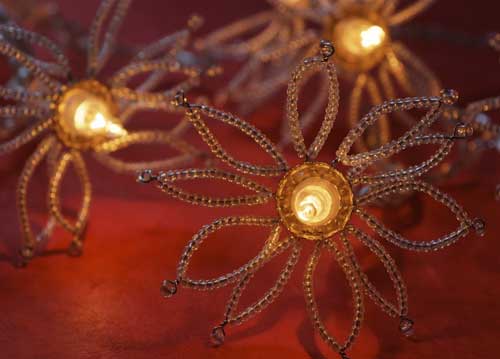 bildreich karten PK 768: sternenkette. Querformat. (Sterne, Lichterkette, Leuchtsterne, Glasperlen)