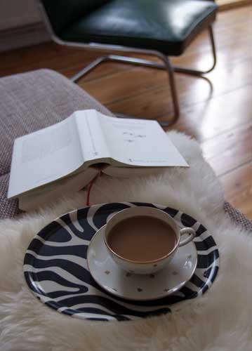 bildreich karten PK 837: an einem stillen nachmittag. Hochformat. (Kaffeetasse, Tablett, Fell, Sessel)