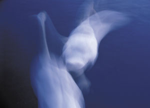 bildreich karten PK 2: schwäne I. Querformat. 1997. (Schwan, Schwäne, Paar, Bewegung, Tanz) Mindestbestellmenge: 15 Karten (auch assortiert).