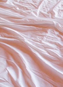 bildreich karten PK 99: bett I. Hochformat. 2004. (Bett, Bettwäsche, Bettlaken, Matratze)