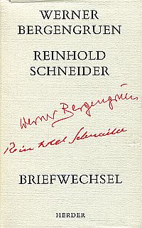 Bergengruen, Werner/Schneider, Reinhold: Briefwechsel. Mit 2 Handschriftenproben, 3 Abbildungen und einem Nachwort. Freiburg i. Br.: Herder, 1966. 8°. 157 S., 1 Titelbild, Leinen (Besitzervermerk auf Vorsatz; Ex Libris auf Innendeckel; gut erhalten)