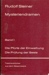 Steiner, Rudolf: Mysteriendramen. Taschenbuchausg., 1. – 10. Tsd. 2 Bände. Dornach: Rudolf-Steiner-Verlag 1973. 8°. 277 S., broschiert (Papierbedingt gebräunt; Einband mit leichten Gebrauchsspuren; sonst gut erhalten) Band 1: Die Pforte der Einweihung. Die Prüfung der Seele – Band 2: Der Hüter der Schwelle. Der Seelen Erwachen.