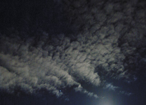bildreich karten PK 243: helle nacht mit stern. Querformat. 2006. (Wolken, Mondlicht, Stern, Planet, Jupiter, Vollmondnacht) Mindestbestellmenge: 15 Karten (auch assortiert).
