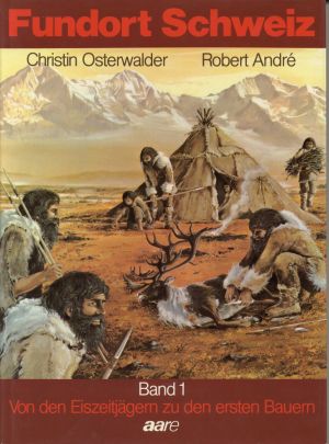 Osterwalder, Christin/André, Robert (Ill.): Von den Eiszeitjägern zu den ersten Bauern. 3. Auflage. Aarau: Aare 1982. 4°. 124 S., durchgehend zum Teil farbige Abbildungen, Pappband (Schutzumschlag mit Randläsuren; gut erhalten) (=Fundort Schweiz; 1)