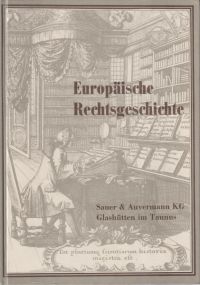 Sauer, Georg/Auvermann, Detlef: Europäische Rechtsgeschichte. 2 Bände Glashütten im Taunus: Sauer & Auvermann 1972-1974. 8°. 464; 124 S., zahlreiche sw-Abbildungen, 1 Farbtafel, Pappband (gut erhalten) Band 1: Literatur zur Geschichte der Rechtswissenschaften. Die Werke der großen europäischen Rechtsdenker des Mittelalters und des 16. Jahrhunderts. Berühmte Rechtsbücher, Stadt- und Landesrechte, Reichsabschiede, Reichskammergericht etc. mit besonderer Berücksichtigung des 15. und 16. Jahrhunderts (mit den entsprechenden Fortsetzungen bis zum Ende des 18. Jahrhunderts) – Band 2: Juristen des 17. und 18. Jahrhunderts, unterer besonderer Berücksichtigung der Staatsphilosophie, des Staats- und Völkerrechts.