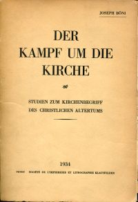 Böni, Jakob: Der Kampf um die Kirche. Studien zum Kirchenbegriff des christlichen Altertums. Vevey: Klausfelder 1934. Gr.-8°. 326 S. broschiert (Papier altersbedingt leicht gebräunt; altersgemäss gut erhalten)