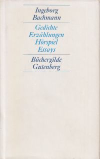 Bachmann, Ingeborg: Gedichte, Erzählungen, Hörspiel, Essays. Frankfurt/Main: Büchergilde Gutenberg 1968. 8°. 381 S., Leinen (Schutzumschlag mit leichten Randläsuren; gut erhalten) CHF 22.00 |