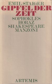 Staiger, Emil: Gipfel der Zeit. Studien zur Weltliteratur ; Sophokles, Horaz, Shakespeare, Manzoni. Zürich: Artemis 1979. 8°. 299 S., Leinen (Schutzumschlag mit leichten Randläsuren und teilweise abgeblasst; Einband leicht verzogen; sonst gut erhalten)