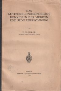 Bleuler, Eugen: Das autistisch-undisziplinierte Denken in der Medizin und seine Überwindung. Berlin: Springer 1919. 8°. IV, 207 S. Broschiert (neuer Rücken; Umschlag leicht angestaubt; sonst altersgemäss gut erhalten)