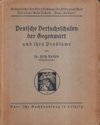 Karsen, Fritz: Deutsche Versuchsschulen der Gegenwart und ihre Probleme. Leipzig: Dürr 1923. 8°. 130 S., Pappband Einband mit Gebrauchsspuren; Papier altersbedingt gebräunt) (=Ordentliche Veröffentlichungen der Pädagogischen Literatur-Gesellschaft „Neue Bahnen“, [23]) Text in Fraktur.