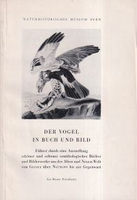 Der Vogel in Buch und Bild. Naturhistorisches Museum Bern ; Führer durch e. Ausstellg schöner u. seltener ornithol. Bücher u. Bildwerke aus d. Alten u. Neuen Welt v. Gesner über Naumann bis zur Gegenwart ; Aus Berner Privatbesitz ; 1. Juni-31. Juli 1954. Bern: Naturhistorisches Museum 1954. 8°. 68 S. Mit 28 Kunstdrucktaf. u. 2 Abbildungen im Text. Broschiert (Besitzervermerk auf Titelblatt; Einband mit leichten Gebrauchsspuren; gut erhalten)