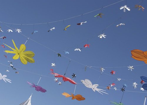 bildreich karten PK 632: jangos sommerspiel. Querformat. (Drachen, Luft, Girlanden, Blumen, Party, Geburtstag, Jubiläum, Fest) Mindestbestellmenge: 15 Karten (auch assortiert).