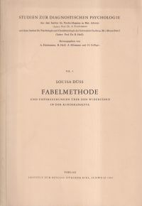 Düss, Louisa: Fabelmethode und Untersuchungen über den Widerstand in der Kinderanalyse. Biel: Inst. für Psycho-Hygiene 1956. 8°. 112 S., Broschiert (Rücken bestossen und teilweise lädiert; Stempel auf Innendeckel; Einband teilweise abgedunkelt; sonst gut erhalten) (=Studien zur diagnostischen Psychologie, 4)